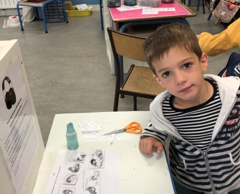 Lors de la première période, les grandes sections ont découvert une nouvelle classe et les brevets des 3 premières parties du cahier d’apprentissages. C’est un outil qu’ils connaissent bien puisqu’ils le manipulent depuis la petite section.