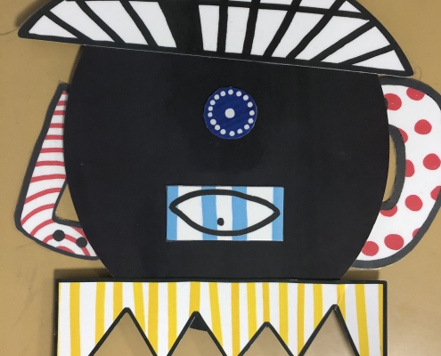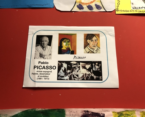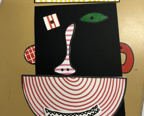 Le peintre P.Picasso et l’atelier jeu « esthétik » sont venus enrichir nos pratiques ; désormais nous réalisons des portraits farfelus !