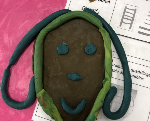 Nous avons modelé des têtes en nous appliquant sur les détails : forme de la bouche, des sourcils, cheveux, oreilles, nez…