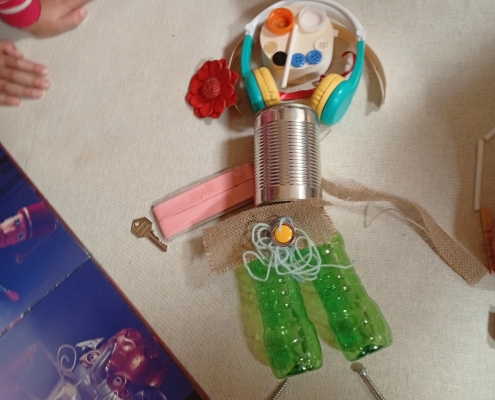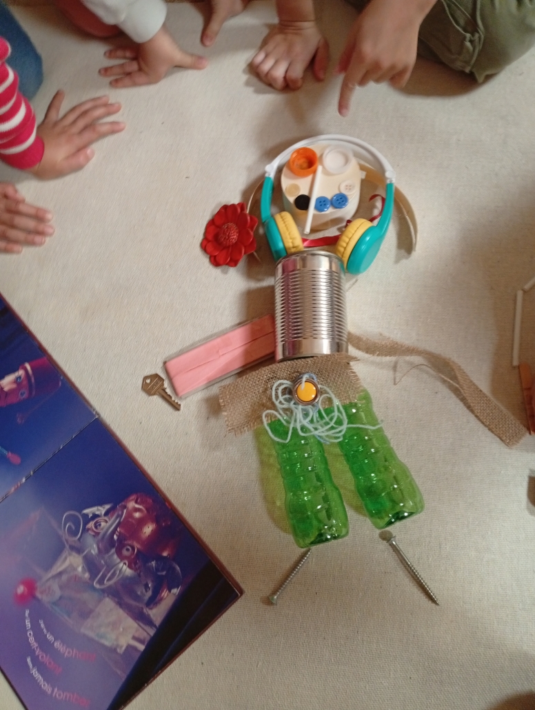 Dans le cadre des propositions du réseau « l’imaginaire », nous sommes allés à la bibliothèque pour découvrir l’univers de Christophe Alline, « fabricoleur » d’images… et d’histoires. Nous avons adoré ses livres, ses chansons, ses histoires, ses illustrations ! ! Nous avons créé nous-mêmes des fonds de pages avec des objets récupérés. De retour en classe, nous avons écrit une courte histoire à partir de ces images.